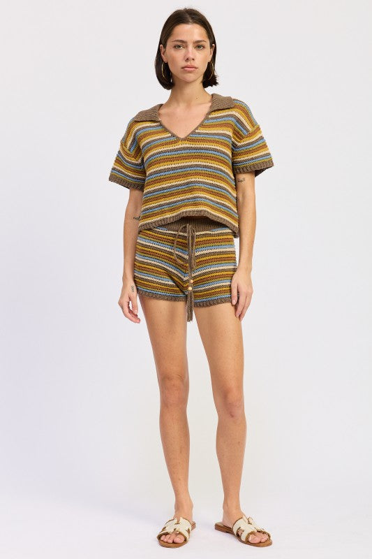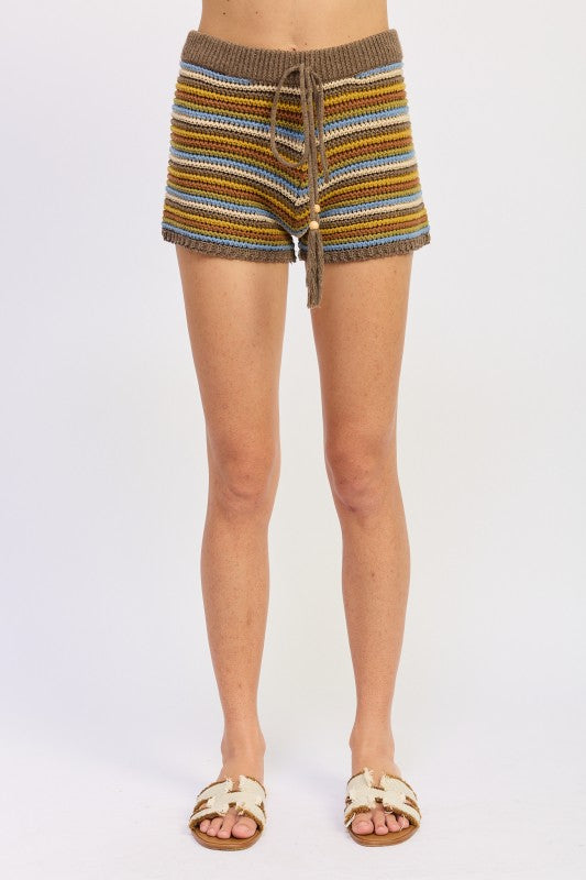• MINI CROCHET KNITTED STRIPED SHORTS