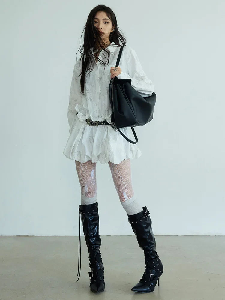 Peechu Button Up Puff Dress by Marigold Shadows loading
