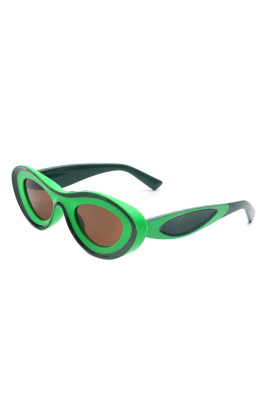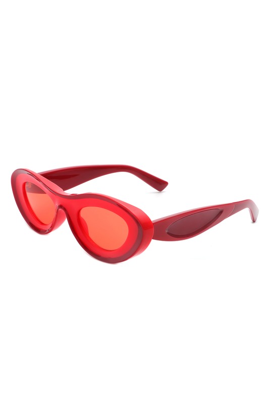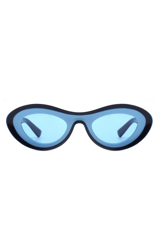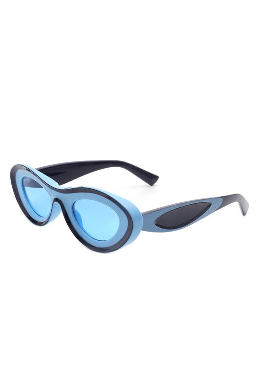 Retro-inspired oval sunglasses with a bold, futuristic frame design that makes a fun and standout fashion statement.