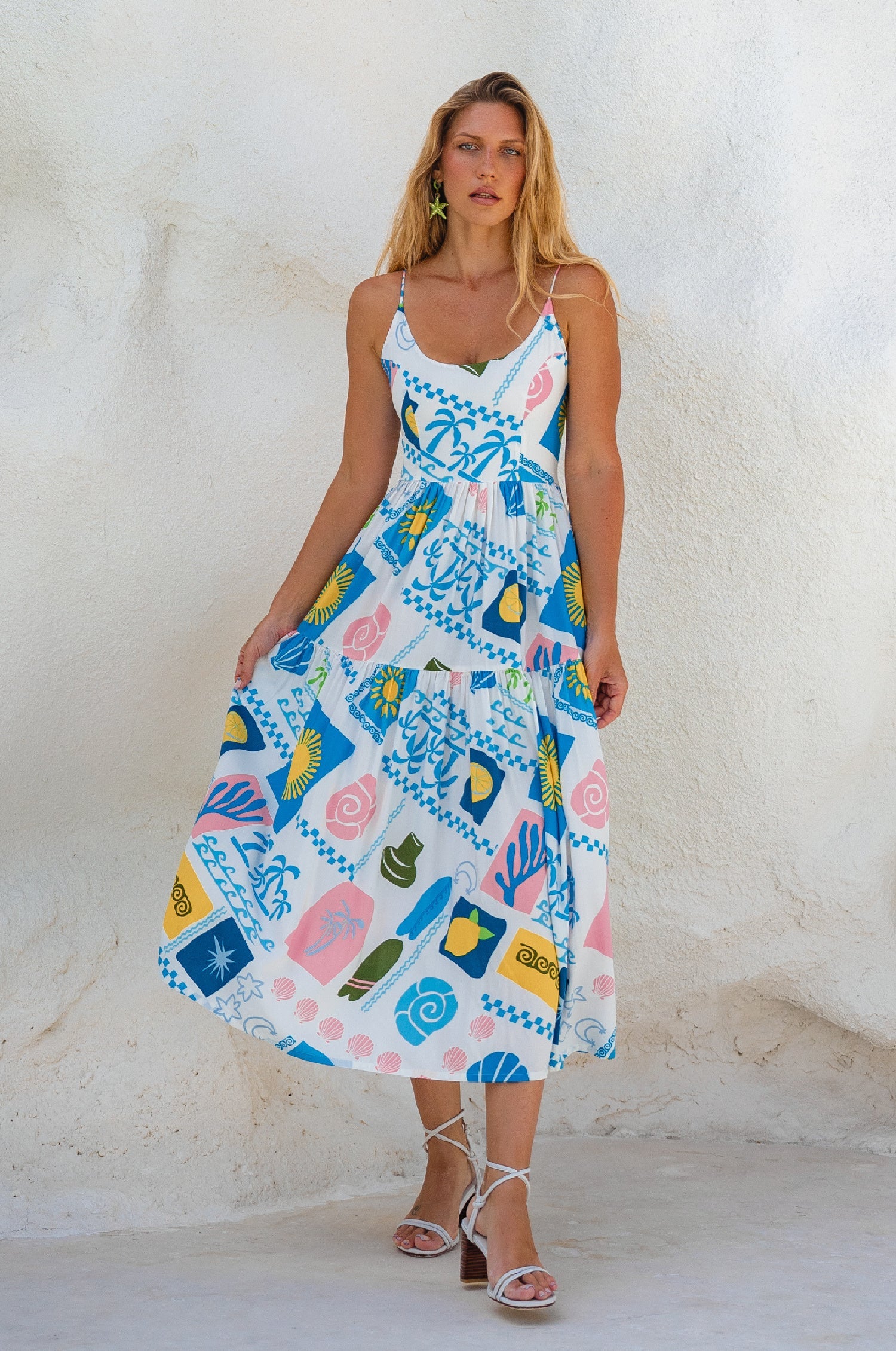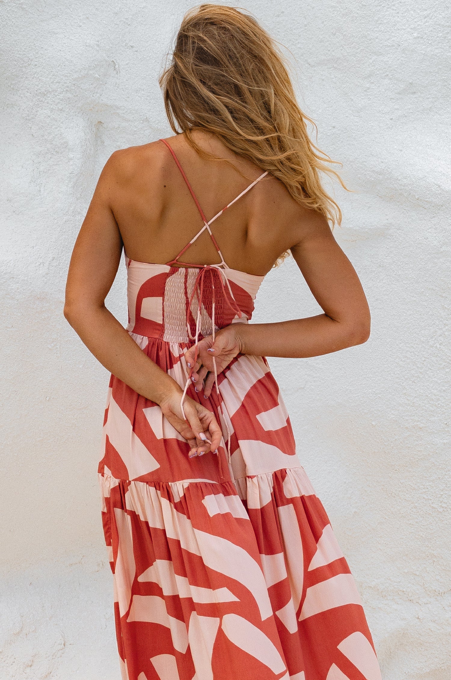 Experience the ultimate beachside holiday vibes with our Sea Dreamer midi dress. Handcrafted from soft and airy rayon it is framed with smocked back, criss cross ties and dreamy voluminous two-tier skirt.