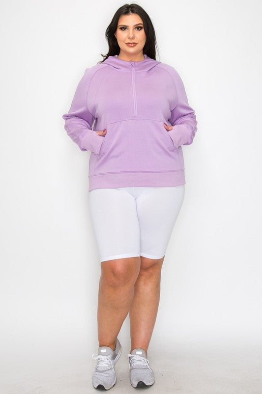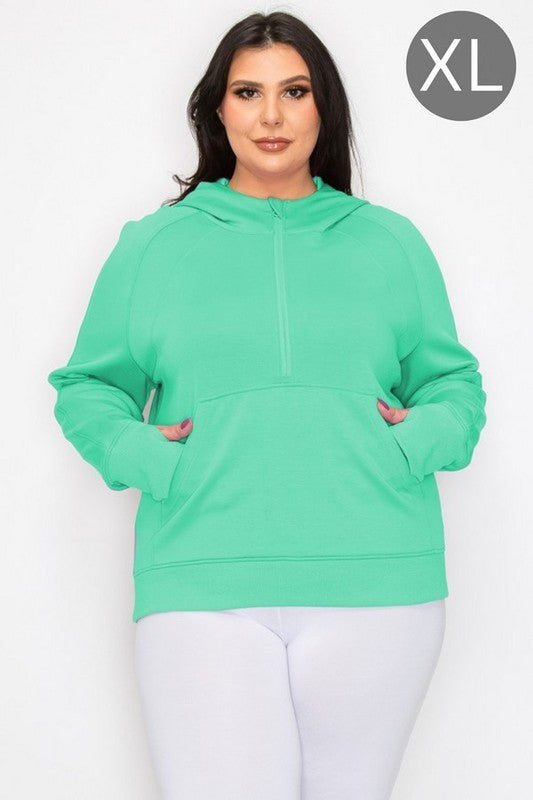 This Scuba Quarter Zip Hoodie offers all-day comfort and style. It's designed with thumb holes, a kangaroo pocket, and a wide cuffed trim for a secure fit. The lightweight fabric keeps you warm without feeling heavy.